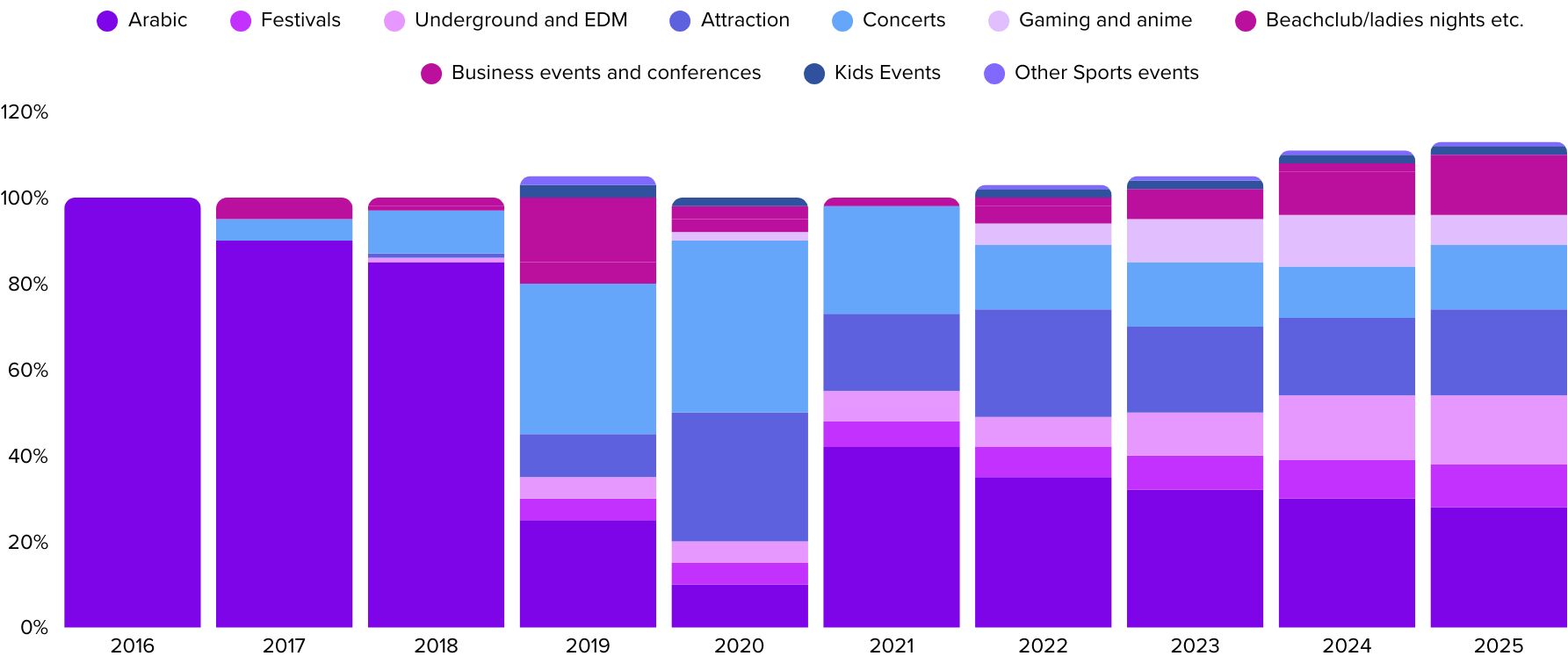 هذا التحوّل لم يكن مجرد تغيير في نوعية المحتوى، بل كان تحولًا ثقافيًا جعل من الفعاليات جزءًا لا يتجزأ من الحياة اليومية. وفي عام 2016، دعمنا عددًا محدودًا من الفعاليات، أما في عام 2025، فنحن بصدد دعم أكثر من 600 فعالية، بمعدل نمو سنوي مذهل يبلغ 61%.