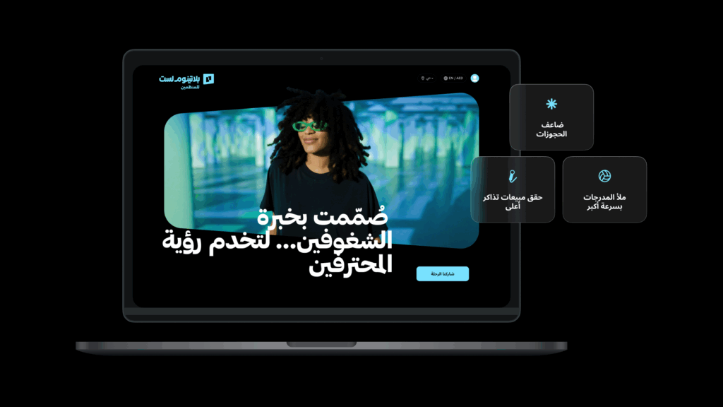 نحن نبني منصة مستعدة للغد، تتطوّر مع نمو مشهد الفعاليات في الخليج. من تحسين البحث والدفع، إلى أدوات الشركاء والمحتوى، نحن نعيد النظر في كل تفصيل، لجعل كل خطوة أذكى، وأكثر تأثيرًا. ومع توسعنا في الأسواق، نعلم أن المنصة العصرية لا يجب أن تنمو فقط، بل أن تتحدث اللغة المحلية، لغويًا وبصريًا وثقافيًا.