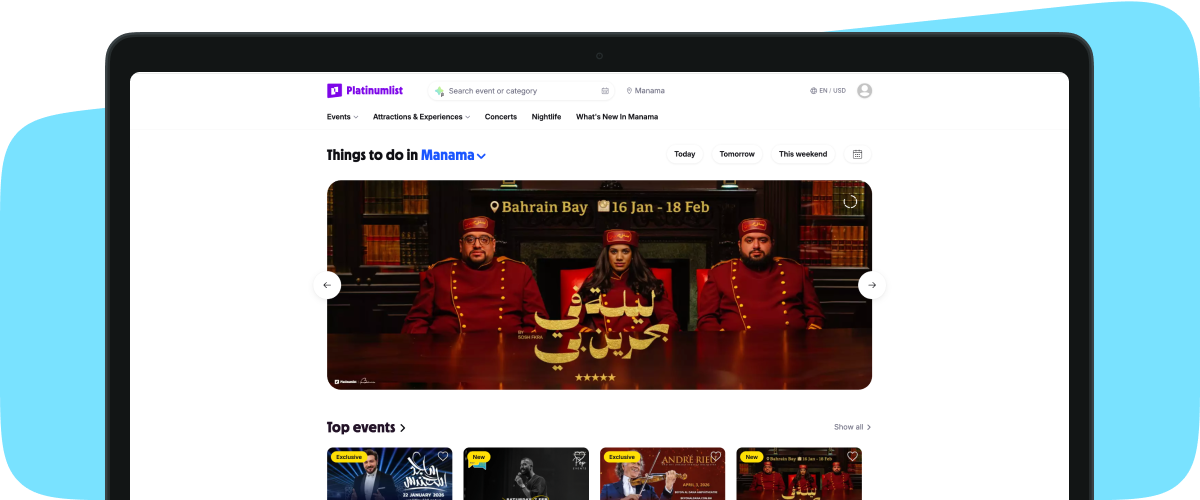 Platinumlist is the leading platform in Bahrain for selling tickets online and entertainment discovery. Launch your event faster, reach bigger audiences, and stay fully in control. All from one powerful platform.