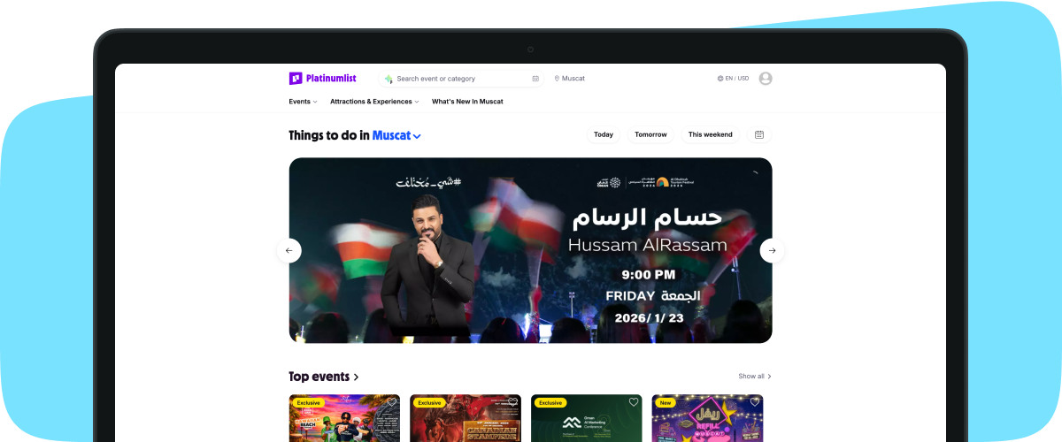 Platinumlist is the leading ticketing and entertainment discovery platform in Oman, trusted by event organisers, venues, and attractions to grow audiences, maximise sales, and deliver stress-free guest experiences.