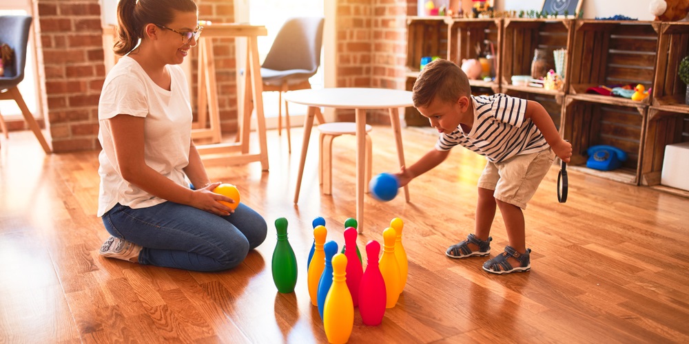 What you need: Empty bottles to act as bowling pins and a soft ball or rolled-up socks to knock them down. Tip: Add a little water to the bottles so they stand more steadily.
