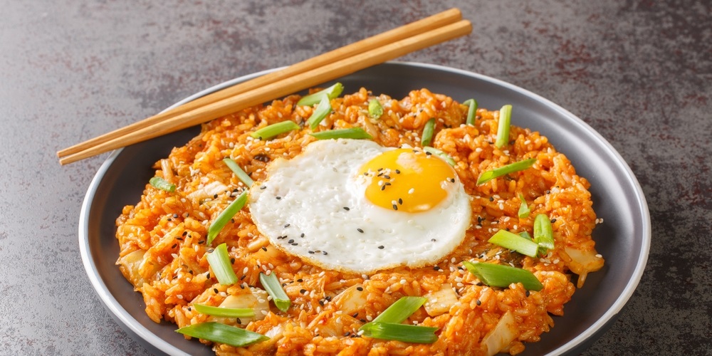 Start by letting the kimchi cook in a hot pan until it softens and releases its flavour. Add the rice and break it up as you mix everything together. Once it’s evenly coated, stir in soy sauce and gochujang, with a small touch of sugar if you like a bit of balance. Top it with a fried egg, and it’s ready.