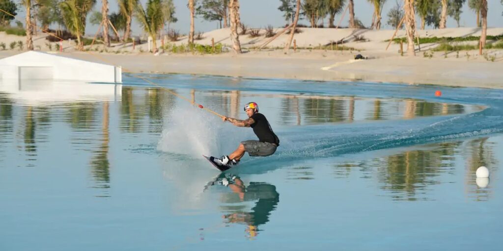 And then there’s the headline attraction: a 215-metre-long saltwater surf pool, the largest in Saudi Arabia, with waves rising above two metres once fully operational. With direct beach access, you can also jump into football or volleyball.