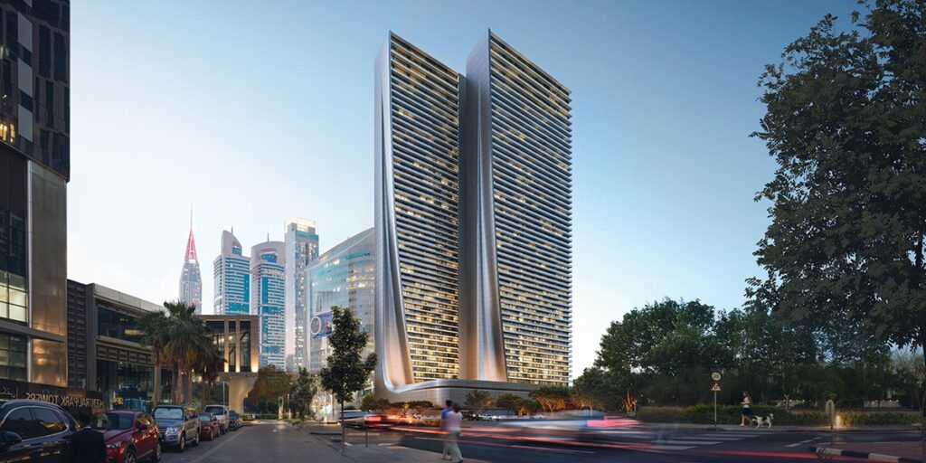 Located between Downtown Dubai and DIFC, the twin-tower development is designed with well-being at its core. Developed by Arada, the project is more than just a place to stay — it’s a space designed to help guests and residents live better. One of the 220-metre towers will host a next-gen hotel, while the other will feature 534 branded residences.