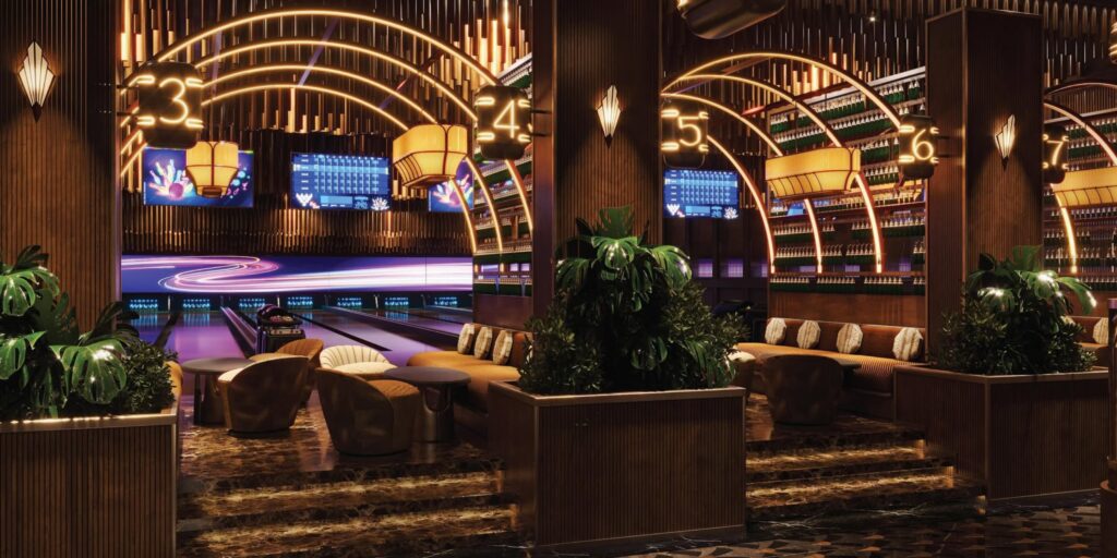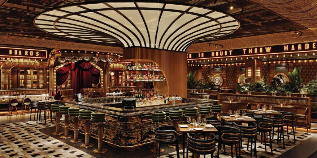 يوجد أيضًا منصة مركزية لعروض الدي جي والفرق الموسيقية الحية، مما يخلق أجواءً نابضة بالحياة، إلى جانب بارات موزعة في كل طابق للحفاظ على تدفق المشروبات. كما تحيط محطات الطعام بمناطق اللعب، لتضمن أنك لن تضطر للذهاب بعيدًا لتناول وجبة خفيفة أو وجبة كاملة.