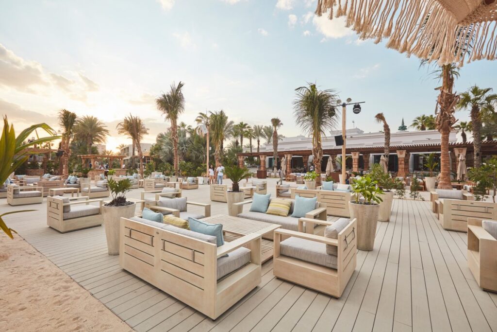 Nestled within One&Only Royal Mirage, DRIFT Beach Club offers a more tranquil and luxurious ladies beach club experience, starting at AED99 per person. Its ladies’ day offers include access to an elegant beach setting, Mediterranean-inspired cuisine, and an infinity pool surrounded by plush loungers every Tuesday or Thursday.