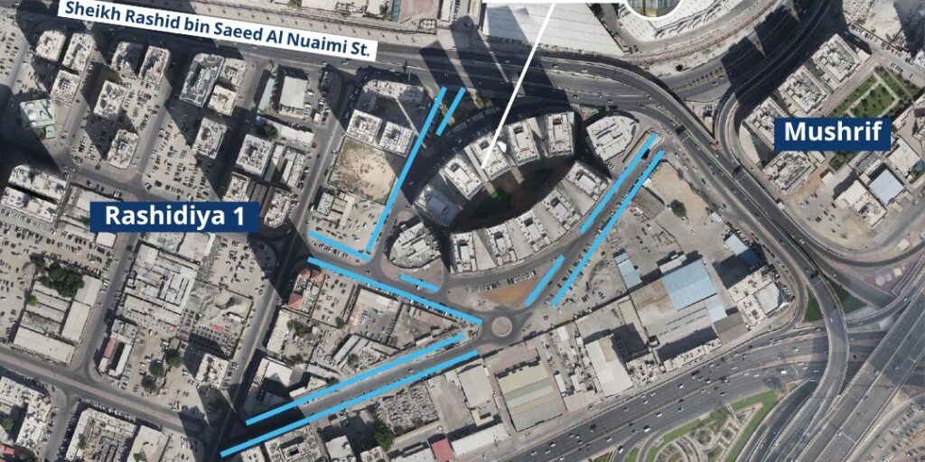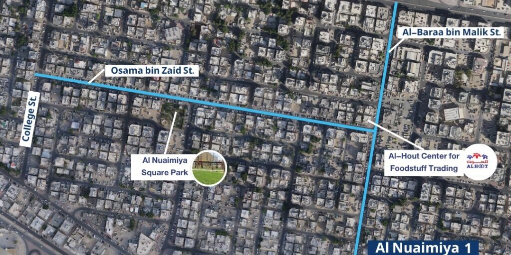 - شارع الشيخ عمار بن حميد النعيمي (بالقرب من أبراج جاردن سيتي)