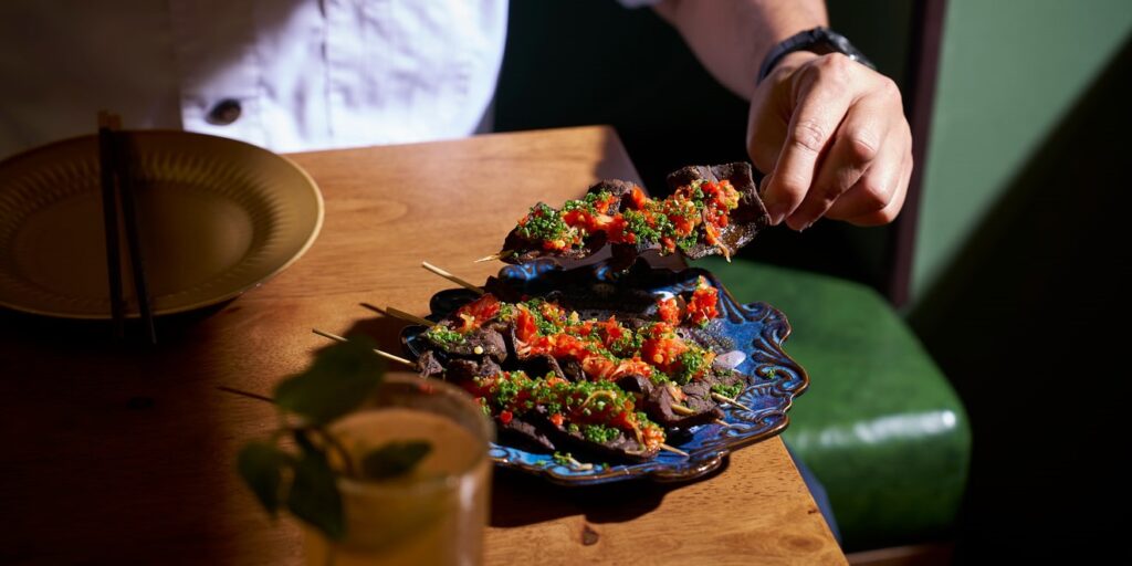 For example, diners can look forward to his twist on ketoprak, where traditional peanut sauce is replaced by a Japanese sesame dressing enriched with kombu. His beef cheeks rendang introduces fried mantou buns, an innovation he humorously calls “Minangka-bao,” drawing from both Malay and Chinese influences.