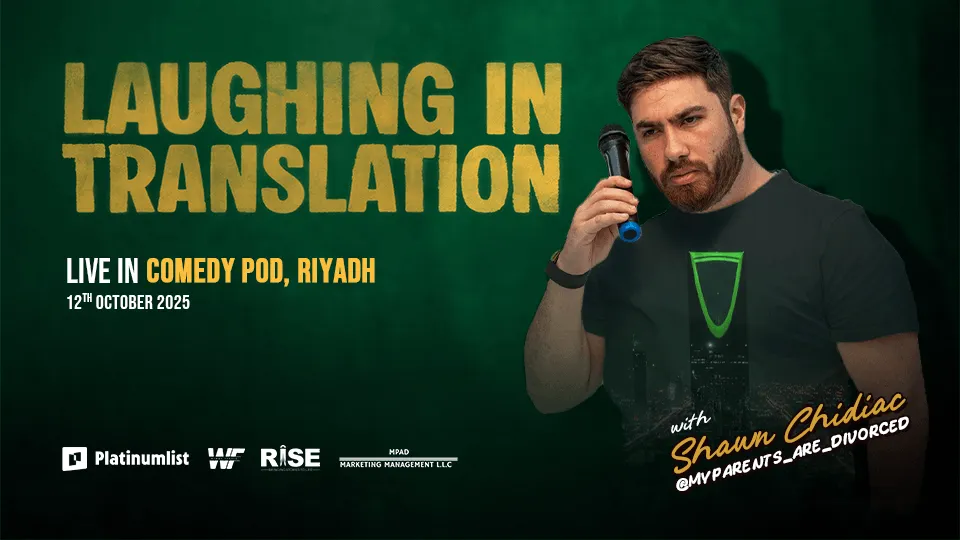 استعدوا لليلة كوميدية مختلفة تمامًا مع شون شدياق الذي يقدّم عرضه الشهير Laughing in Translation في الرياض. بشخصيته المرحة وملاحظاته الذكية حول الثقافات، يحوّل شون المواقف اليومية البسيطة إلى لحظات مليئة بالضحك.