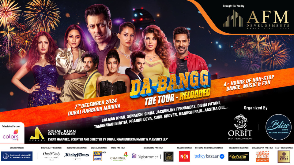 Prepare for a night of Bollywood glamour with Da-Bangg Reloaded, featuring superstar Salman Khan alongside a stellar lineup of Bollywood icons. The show promises a thrilling mix of music, dance, comedy, and entertainment, creating a high-energy atmosphere for fans of Bollywood’s biggest stars.
