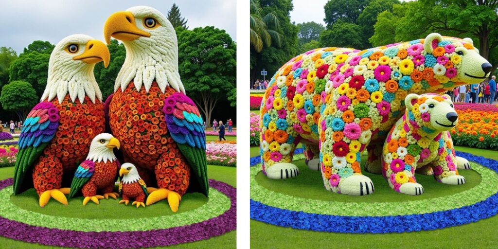 In Fantasy Park, you can wander through a world of oversized animal sculptures made entirely from flowers and greenery. It’s a unique home for animals, like American Bald Eagle, Siberian Tiger, and adorable Australian Koala. The floral creations are so beautifully crafted, you’ll want to fill your phone memory and Instagram feed with these stunning sights!