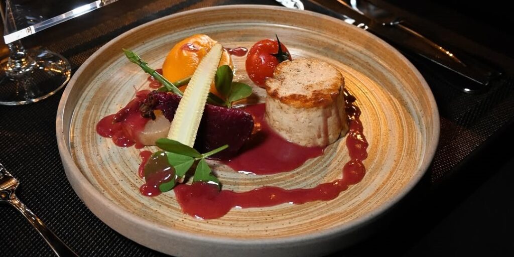 How about starting your meal with passion fruit marinated salmon gravlax, followed by grilled scallops with leek and mango fondue? For the main course, you dive into slow-cooked shredded beef, so tender it practically melts in your mouth, paired with earthy green lentils.