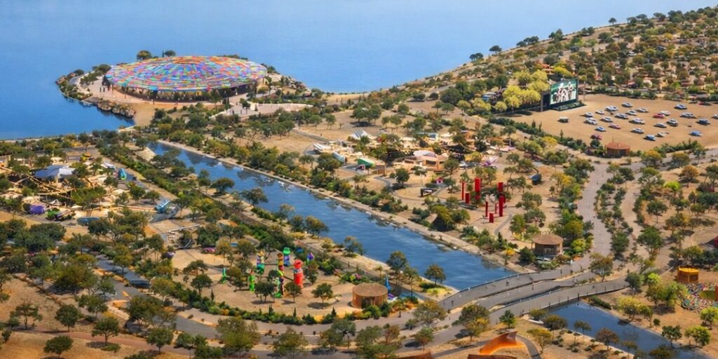 - Gathering Oasis with an open-air cinema, amphitheater, outdoor theater, and a food truck plaza