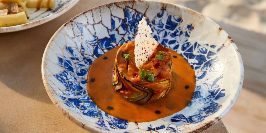 For those who love a peaceful morning, breakfast is served daily starting at 8 AM. Picture yourself sitting on the sand with a view of the water as you enjoy everything from freshly baked bread and Bircher muesli to avocado toast, French toast crème brûlée, or eggs benedict topped with Norwegian smoked salmon. It’s the kind of breakfast that makes getting up early worth it.