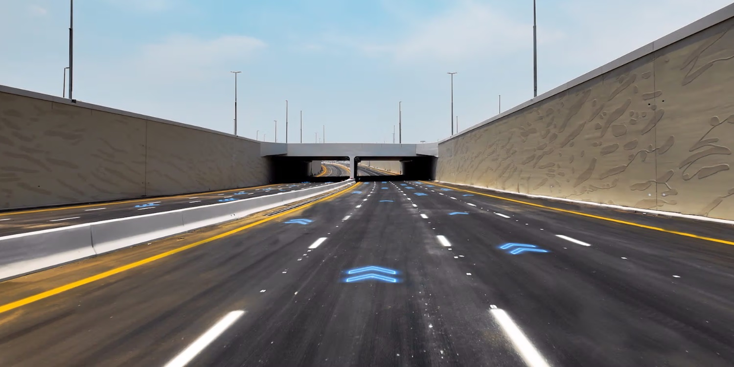 With 4 lanes in each direction, the tunnel is capable to accomodate 16,000 vehicles per hour. As a result travel time is reduced by 61%: from 9.7 minutes to 3.8 minutes between Sheikh Mohammed bin Zayed Road and Al Khail Road.
