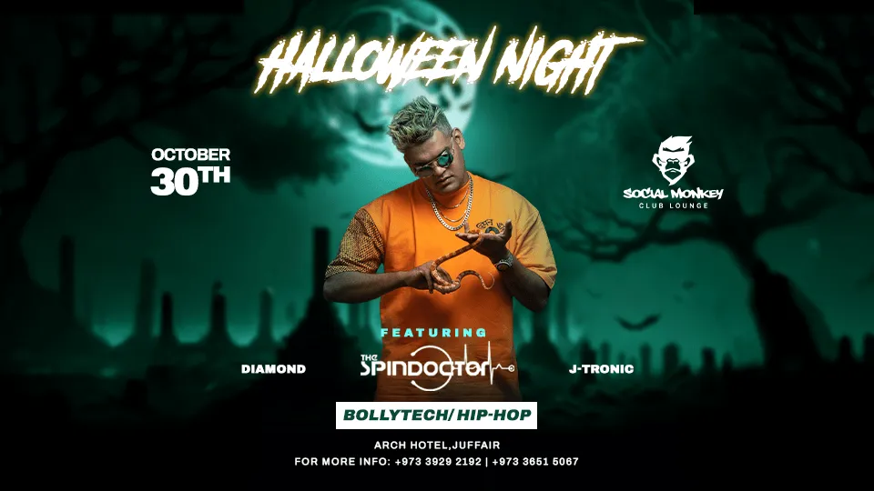 Over at Social Monkey, DJ Spin Doctor takes the stage for BollyTech, a mashup night blending Bollywood and electronic sounds. Expect a crowd that loves to move, lights that pulse with the music, and a playlist built for long, late hours. It’s one of the few Halloween events where costume and color collide, keeping the mood high and the floor packed.