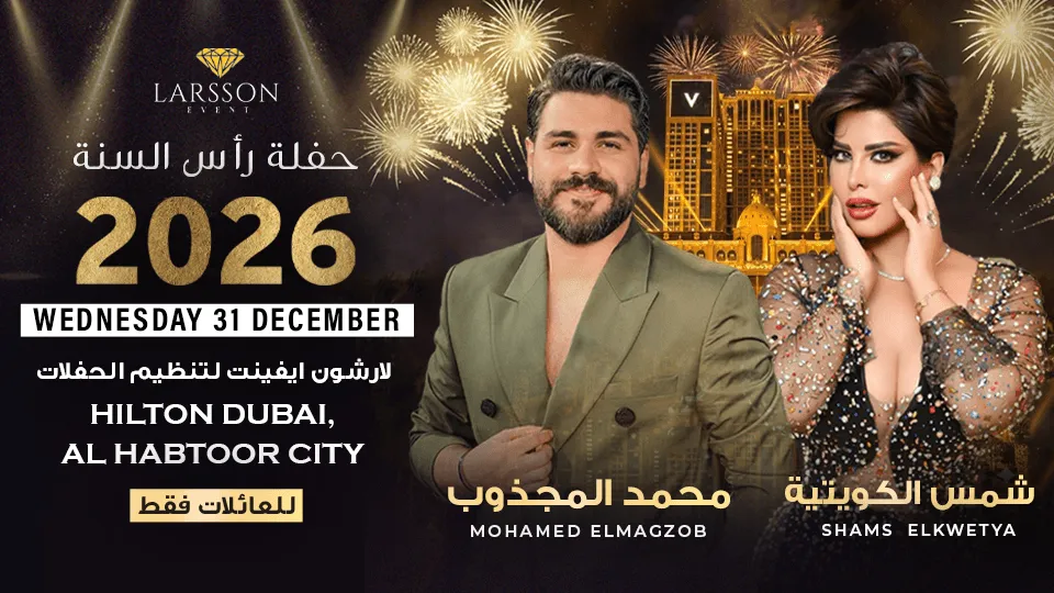 Larsson Events hosts a special New Year’s Eve Gala for families only, featuring live performances by Muhammad El Majzoub and Shams. The evening offers a welcoming atmosphere where parents and children can enjoy music, celebration, and a smooth countdown experience together. With both artists bringing their signature vocals and presence to the stage, the gala creates a warm, memorable way for families to close 2025 and welcome the new year.