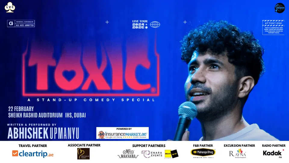 Comedy fans, get ready! Indian stand-up sensation Abhishek Upmanyu is back in Dubai with his solo show ‘Toxic’ at Sheikh Rashid Auditorium. Known for his quick wit and hilarious storytelling, Abhishek guarantees a night of laughter that will leave you in stitches. Don’t miss your chance to see him live!