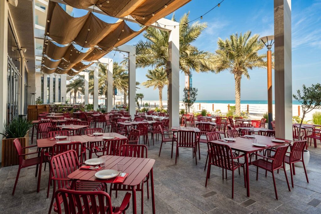 A retro-chic Italian restaurant at Mamsha Al Saadiyat serving homemade pasta in a relaxed, stylish setting. Ideal for a slow dinner or casual night out, and a great option if you’re exploring Italian restaurants in Abu Dhabi that feel warm rather than formal.