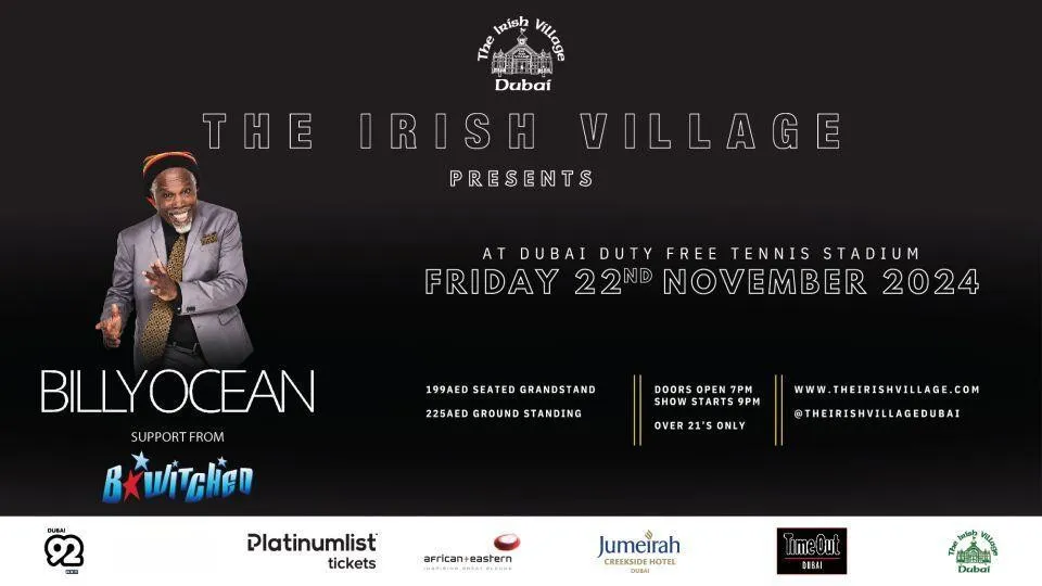 Get ready for a night of nostalgia as Billy Ocean and BWitched take over the Dubai Duty Free Tennis Stadium. Billy Ocean, the legendary British R&B and pop singer, will grace the stage with his timeless classics, supported by the 90s favorite, BWitched. This is your chance to relive the magic of iconic hits in an unforgettable setting.