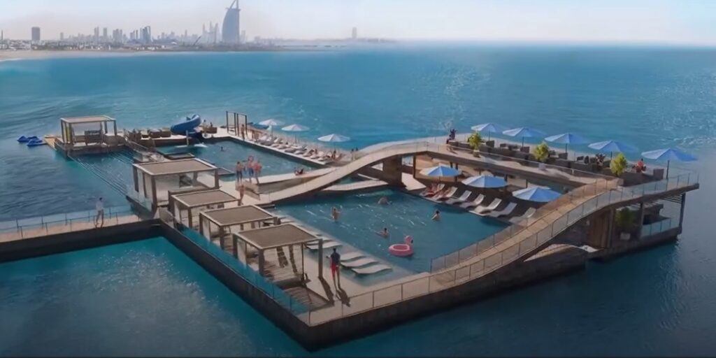 One of the brand-new developments at Umm Suqeim Beach will include a floating platform with a pool, lounge areas, and shaded spots. This area will give visitors incredible views of the Dubai skyline, including the iconic Burj Al Arab.